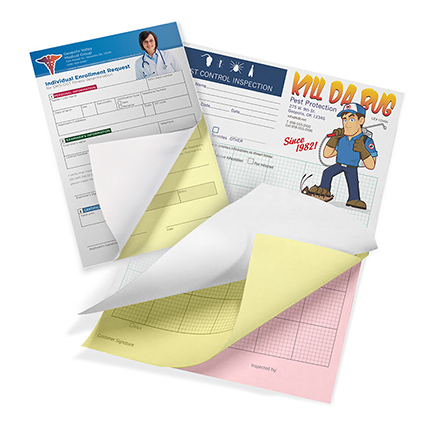 NCR Forms are an efficient way to provide multicolored copies of a single document with handwritten or typed information.. Useful where signatures, dollar amounts, or other information will be added to the form by hand.